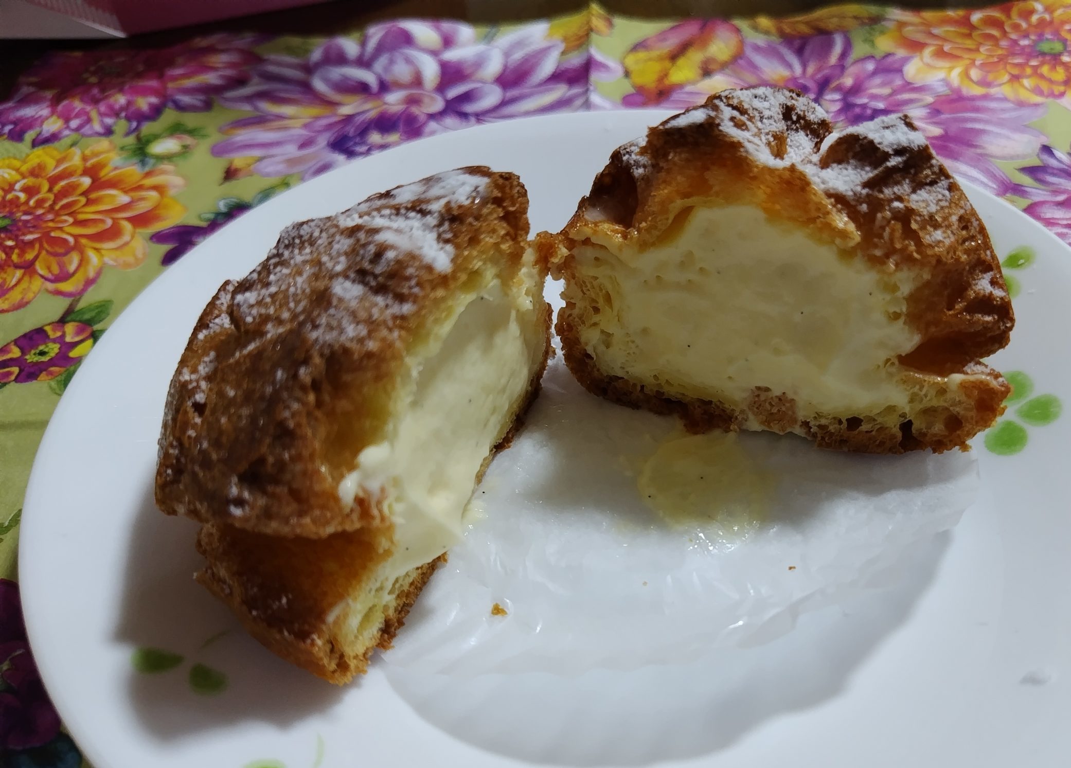 見た目からクッキー生地のような感じでサクサクしているのかなと予想していましたが、そこまで生地の主張は強くなかったです。中にはすごい量のクリームが詰まっていて、満足感がありました。クリームは甘すぎない上品な味で、とても美味しかったです。