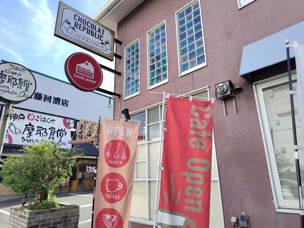 In that case, I remember there is an area with several shops gathered on the eastern side of the Harbor Walk, so I decide to head that way. It’s still a bit hot, so I manage the walk while hydrating. When I reach the eastern end of the Harbor Walk, I can see a fishing tackle shop and other businesses. Heading toward them, I find a café run by Chocolat Republic, a famous Kobe confectionery shop, situated alongside a branch of the ramen shop “Ramen Taro” (which has several locations in Kobe), other restaurants, and diners.