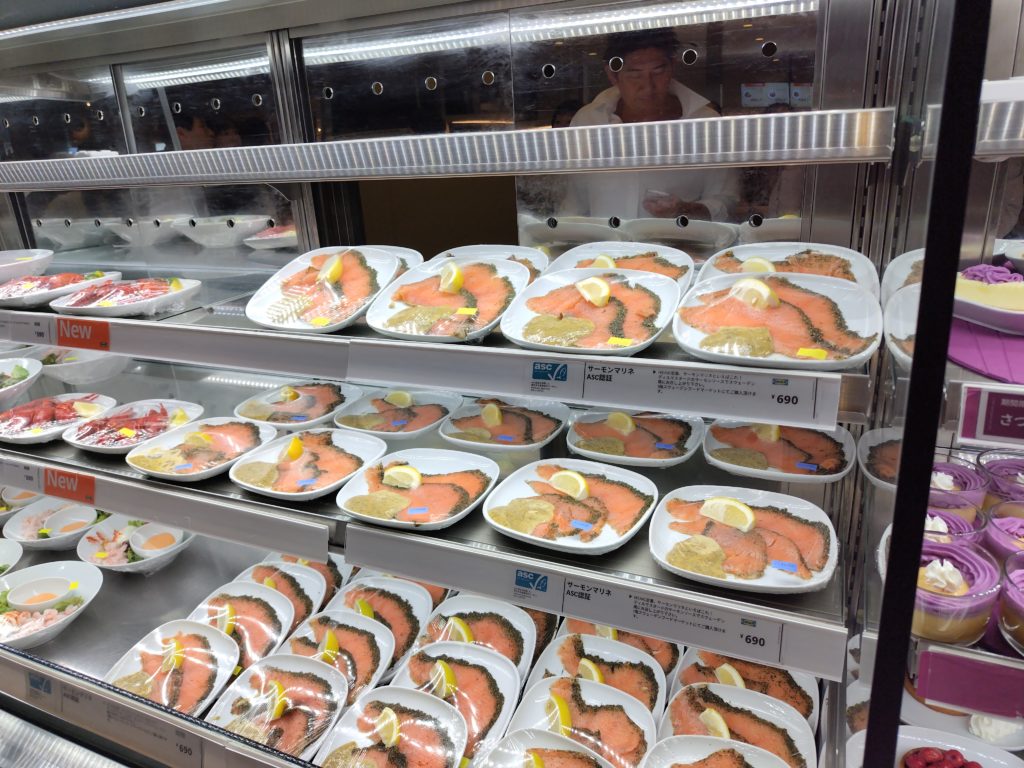 注文は学生食堂のようなシステムで、好きな皿を取って進んでいきます。サーモンが美味しそうだったのですが、結構値段がするなと思って手が出ませんでした。