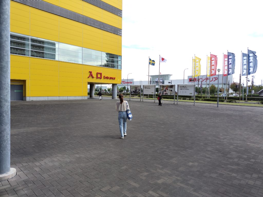 駅の位置はIKEAの建物の裏側なので、表に向かって歩きます。