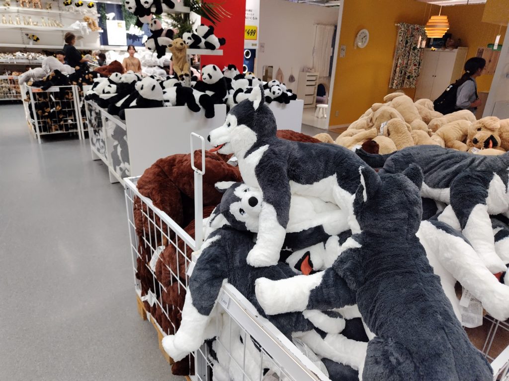 ベッド、マットレスなどのエリアももちろんあり、思ったよりも安いと思いました。マットレスを買い替えることがあれば、IKEAもありだなと思います。ただ、配送してもらう場合、結構な額がかかるので、それをどうしようかなという感じです(ネットで調べたところ、部屋までの配送で4500円するようです。)。最後に近づくと、大量に動物のぬいぐるみが置いてあるコーナーもありました。