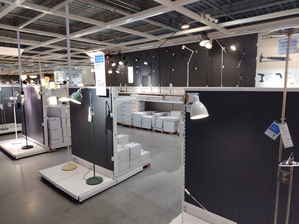 順路にそって進んでいくと、膨大な商品に圧倒されます。個人的に気になったのは、部屋のデザインに合わせて商品が置かれている場所です。ところどころにこのモデルルームみたいな区画があるのですが、それがとてもセンスが良く、こんな部屋に住みたいなと思う見た目なんですよね。でも、考えてみると普段は自分の部屋で大抵パソコンやスマホを見ている自分には、かいがないかもしれません。もう少し自分のいる空間を楽しみたいなと改めて思わされます。まあ、そもそも今住んでいる部屋にこの広さは無いのですが。