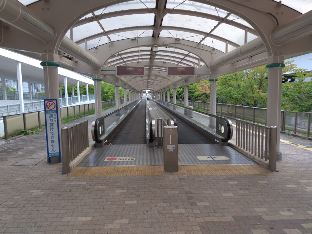 IKEAの表の通りはよく整備されている大通りなのですが、車も人も殆ど通りがありません。ポートアイランドのこの独特の少し寂しい感じは結構好きです。そのまま進むと南公園ですが、昔のことを少し思い出しながら歩きました。医療センター駅に向かうことにし、歩いていきます。ポートアイランドはもともと医療産業都市として計画され、このあたりは市民病院などの病院や医学系の研究所が多くあります。ポートライナー沿いには動く歩道もあり、かなり気合を入れて整備されたエリアだと思いますが、ほぼ使用されていない様子です。当初の計画が成功しているとは言いにくいように思えてしまいますが、個人的にはきれいに整備されているのにあまり人がいなくてさびれたような雰囲気はとても好きです。昔の余裕のなかったころには感じられなかった細部の雰囲気を感じながら帰りました。