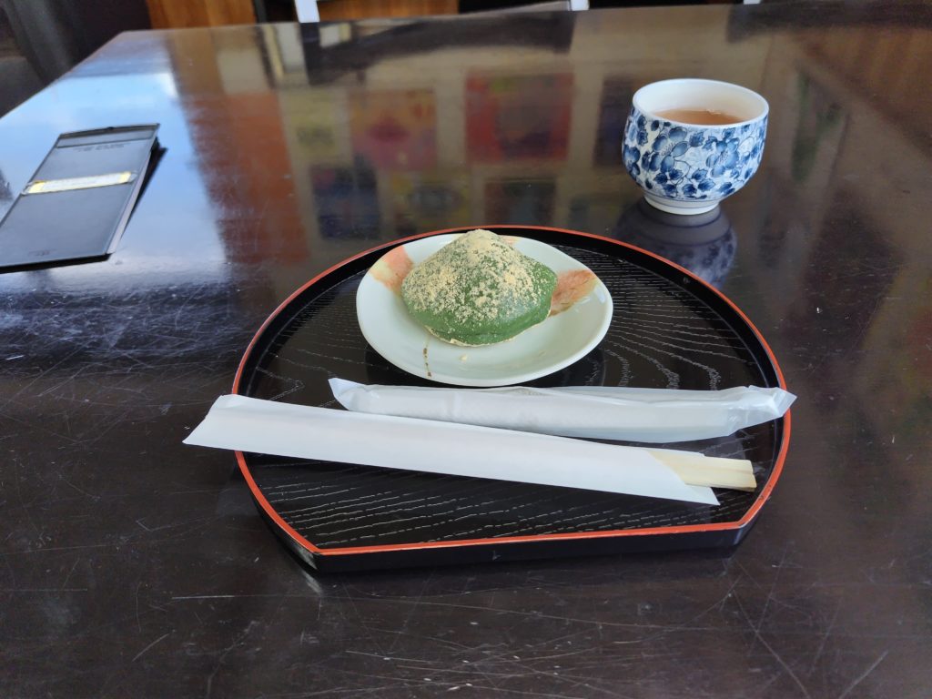 私が行ったときには、お昼の提供時間は終わっていたのですが、カフェメニューはまだ営業していて、よもぎ餅をいただくことができました。お茶もつけてくれて209円です。変わらず美味しかったです。何も添加していない本当の餅なので、時間が経つと少し固くなってきますが、自然な味で大変美味しいです。持ち帰り用が直売所でも販売されているので、それも購入して帰りました。