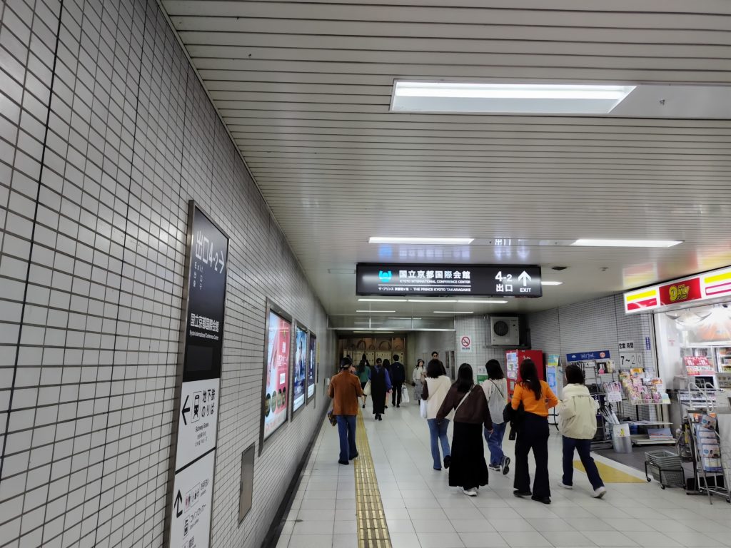 国際会議場までは京都市営地下鉄が便利だと思います。北の終着駅です。国際会館の4番出口に向かってしまったのですが、こちらは国際会館には近いのですが、大原行き京都バス停は少し離れた位置にあります。出口の途中が結構長い廊下になっていて、開催される学会の宣伝なども出ていました。タイミングによっては、会議に参加される人がたくさんここを通るんだろうなと思います。また、京都賞という、結構有名な国際賞の授賞式もここで開催されているようですね。