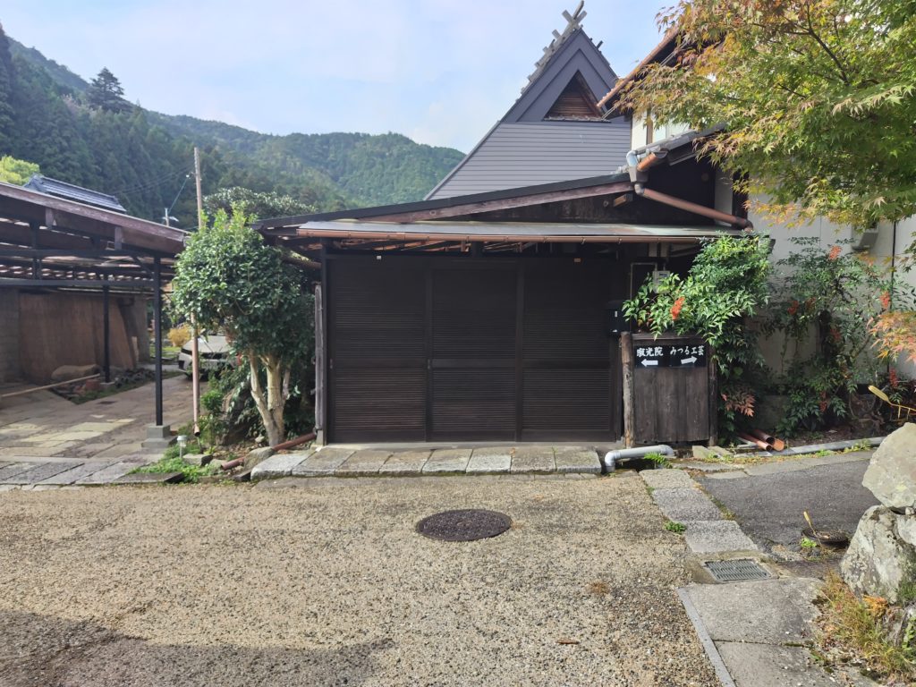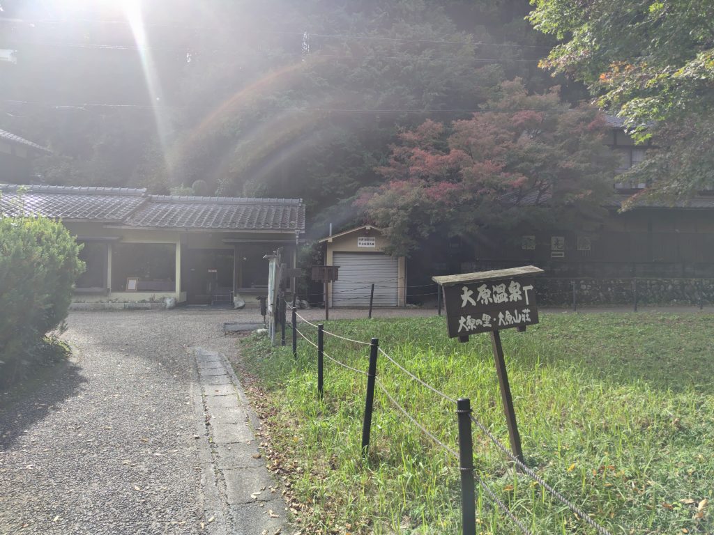 最後に参道らしき道に出るのですが、この道沿いにはいくつかお店や民宿があります。その坂道を上がっていくと、大原山荘にたどり着きます。