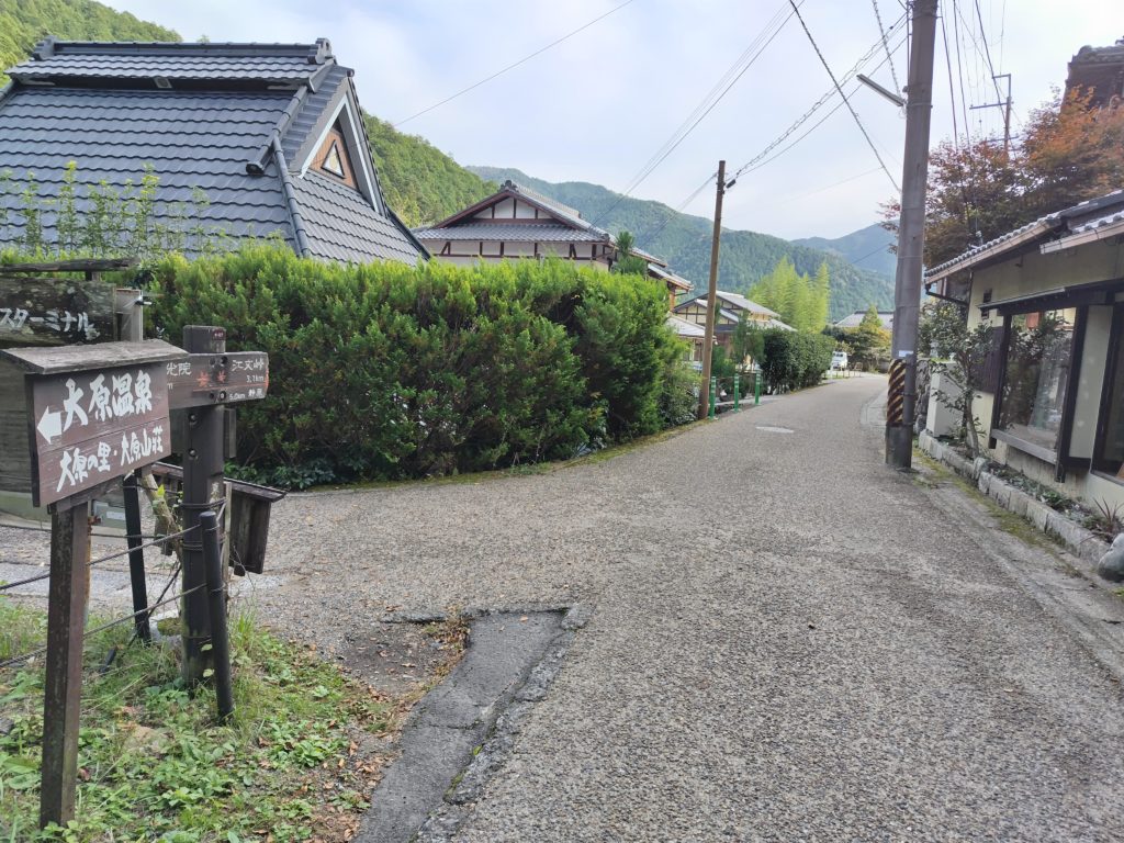 さらに畑の横にある民家沿いの道を、大原温泉や、寂光院といった標識の方向に進んでいきます。
