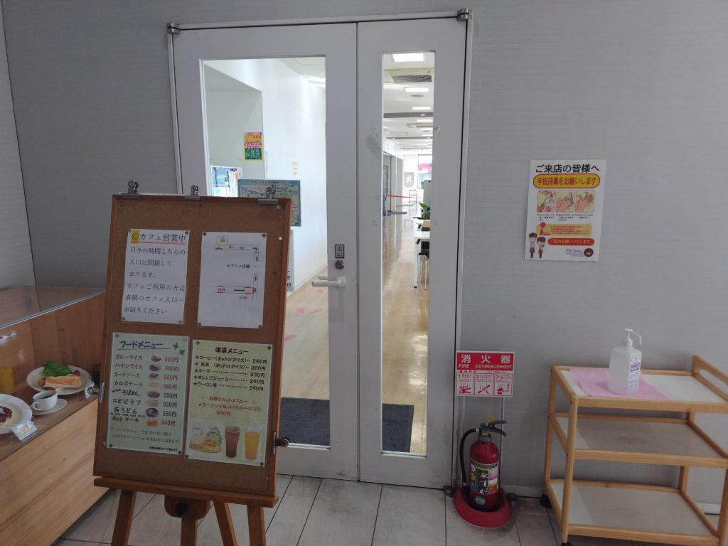 残念だと思って周囲を歩いていると、回り込んだところにもう一つ入り口があり、こちらは開いていました。半信半疑で開けると、いらっしゃいませと言われたので、大丈夫でした。カフェとしては営業していて、入り口を制限しているみたいです。