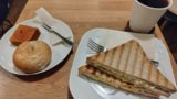 ちなみに入った時には他にお客さんはいませんでした。広々としていて良いなと思って座り、アイスコーヒーを注文します。広いのは良いのですが、結構何というか、うどん出汁の匂いが漂っていました。美味しそうな匂いではあり、そのうち鼻が慣れて分からなくなりました。