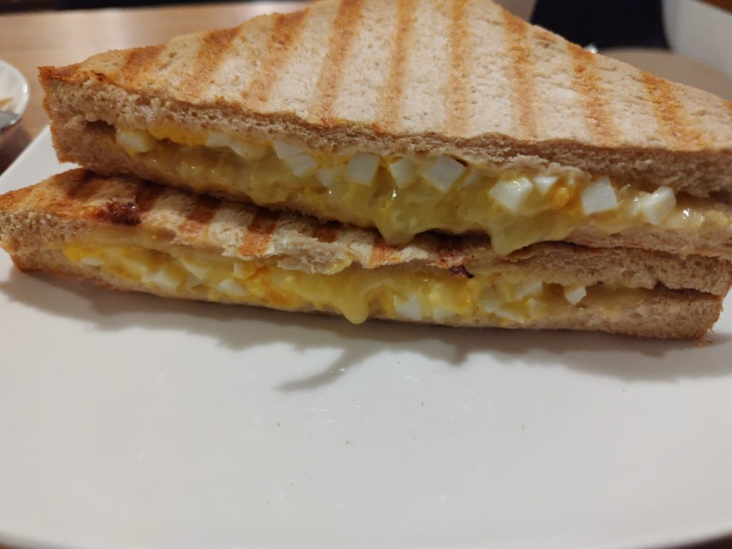 コーヒーは安定の美味しさで、文句なしです。そして、このトーストも、断面が見るからに美味しそうなのですが、卵とチーズの味がマッチしていて、とても美味しかったです。少し蜂蜜が入っていて甘さを感じるのもアクセントでとても良いです。ベーグルは普段あまり食べませんが、素朴な味で良いと思いました。そしてカボチャのケーキは、このお店らしい丁寧に作られた感じで、甘さもちょうどよく、ナッツが入っていてすごく美味しいです。はずれの無い店だなと思います。